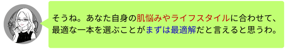 公式サイトの情報だけでは分からない、あなたの肌悩みに寄り添った「本当に価値のある1本」を見つけるお手伝いをさせていただたいと思います。