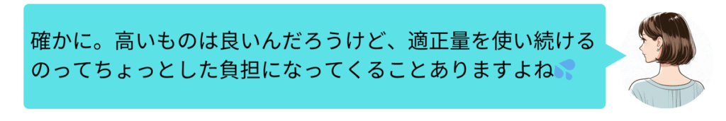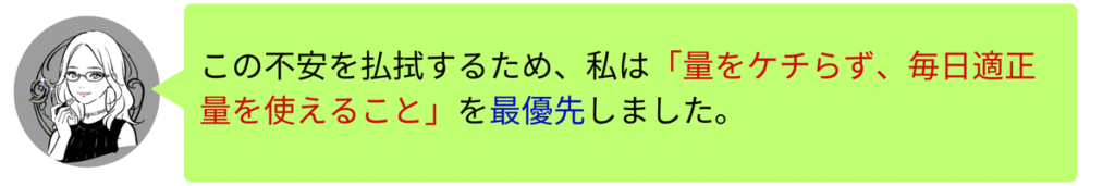 - 適正量を使い続けられるか? 「ちびちび使って、結局肌のためになってない…」なんてことにならないか?