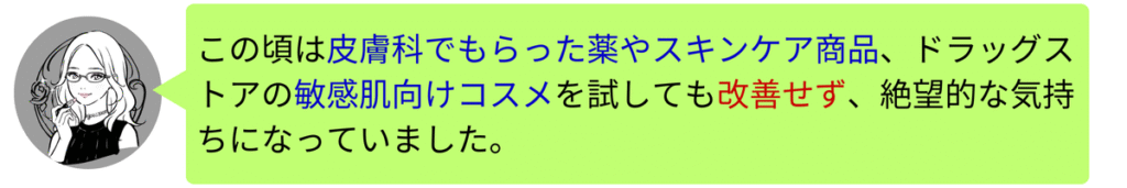 皮膚科でもらった薬や、敏感肌向けのコスメを試しても一向に良くならず、「一生、自分の肌に合う化粧品なんて見つからないのかも」と絶望した日もありました。