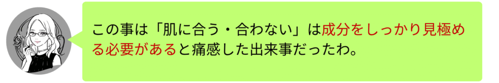 この時のきっかけとなる原因は『薬疹』が発端だったのですが、この時私の長いスキンケア遍歴の中で肌をボロボロにしてきた原因は、特定の強い成分や、洗浄力の強さにある事にも気づきました。
